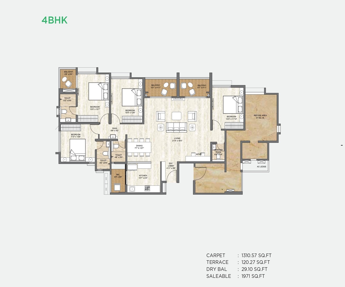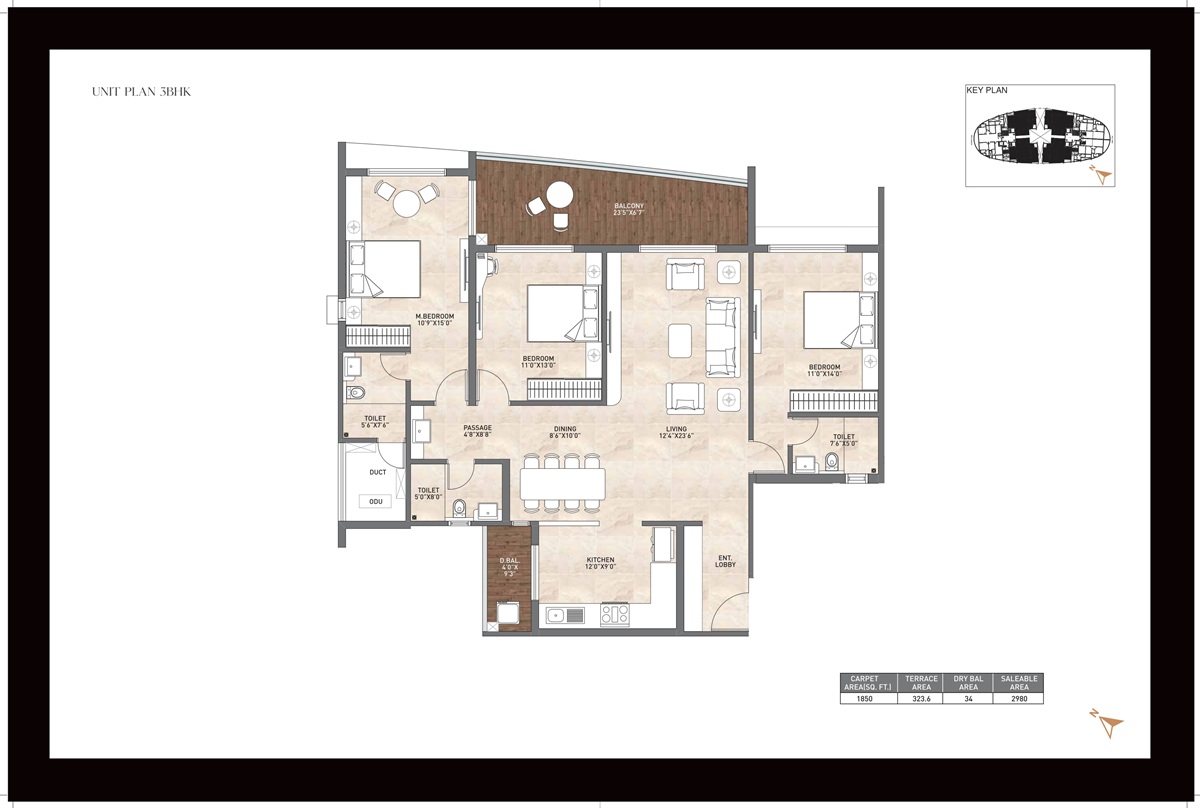 | 3 BHK (XL) | 1161 Sq.Ft. | ₹ 1.23 – 1.24 Cr* Onwards |
