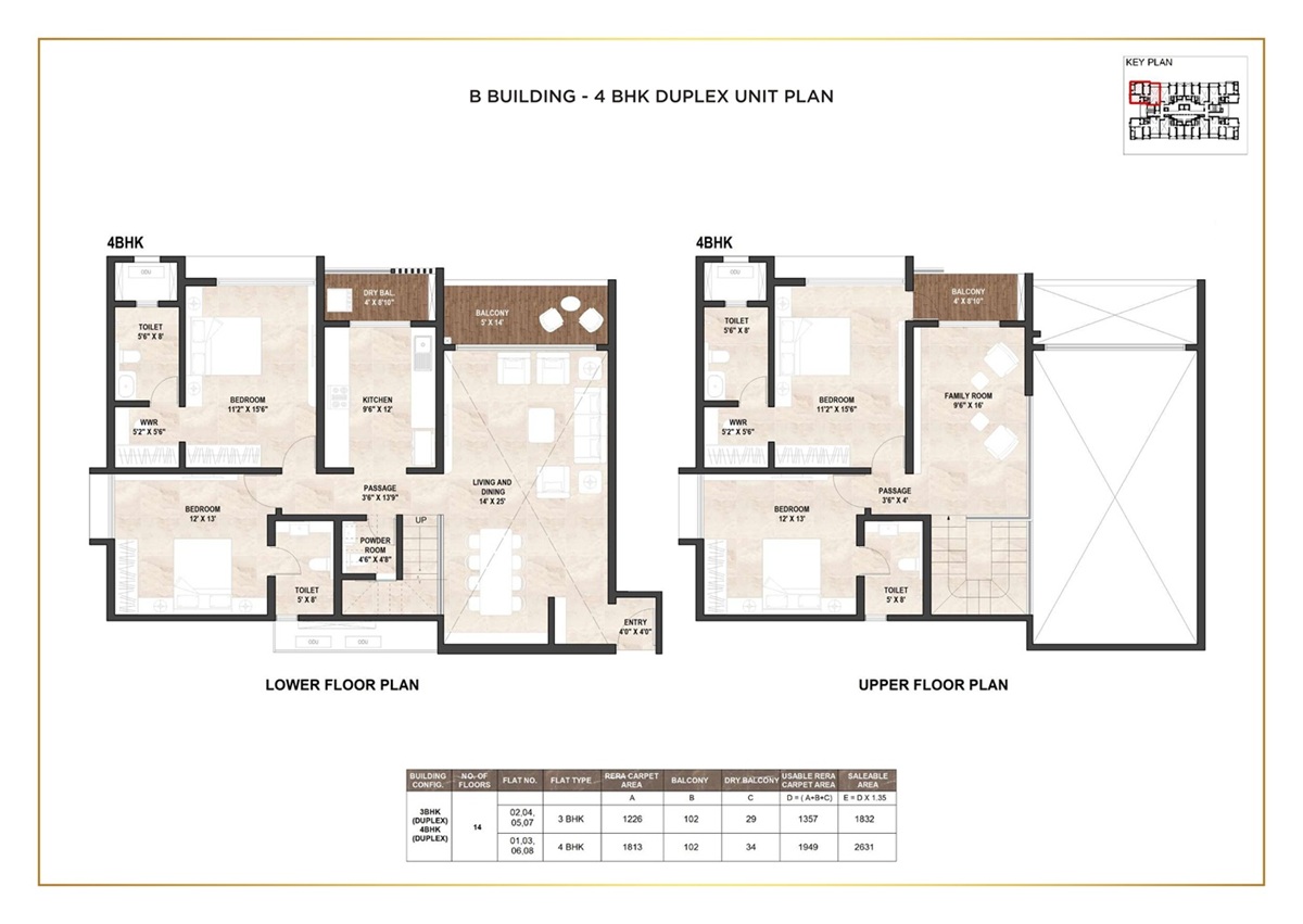 | 4 BHK DUPLEX | 1919 - 1949 Sq.Ft | ₹ 2.06 - 2.08 Cr* Onwards |